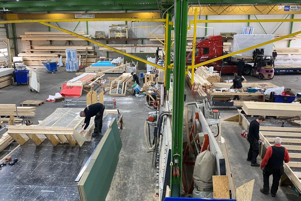 Wij hebben een vast team van medewerkers in onze werkplaats die goed op elkaar zijn afgestemd. Zij zorgen ervoor dat alle houtskeletbouwelementen tot op de millimeter nauwkeurig passen, zodat collega's ze snel kunnen verwerken op de bouwplaats. Het team in de werkplaats werkt samen met een robot die ervoor zorgt dat er geen foutmarge in de elementen zit.